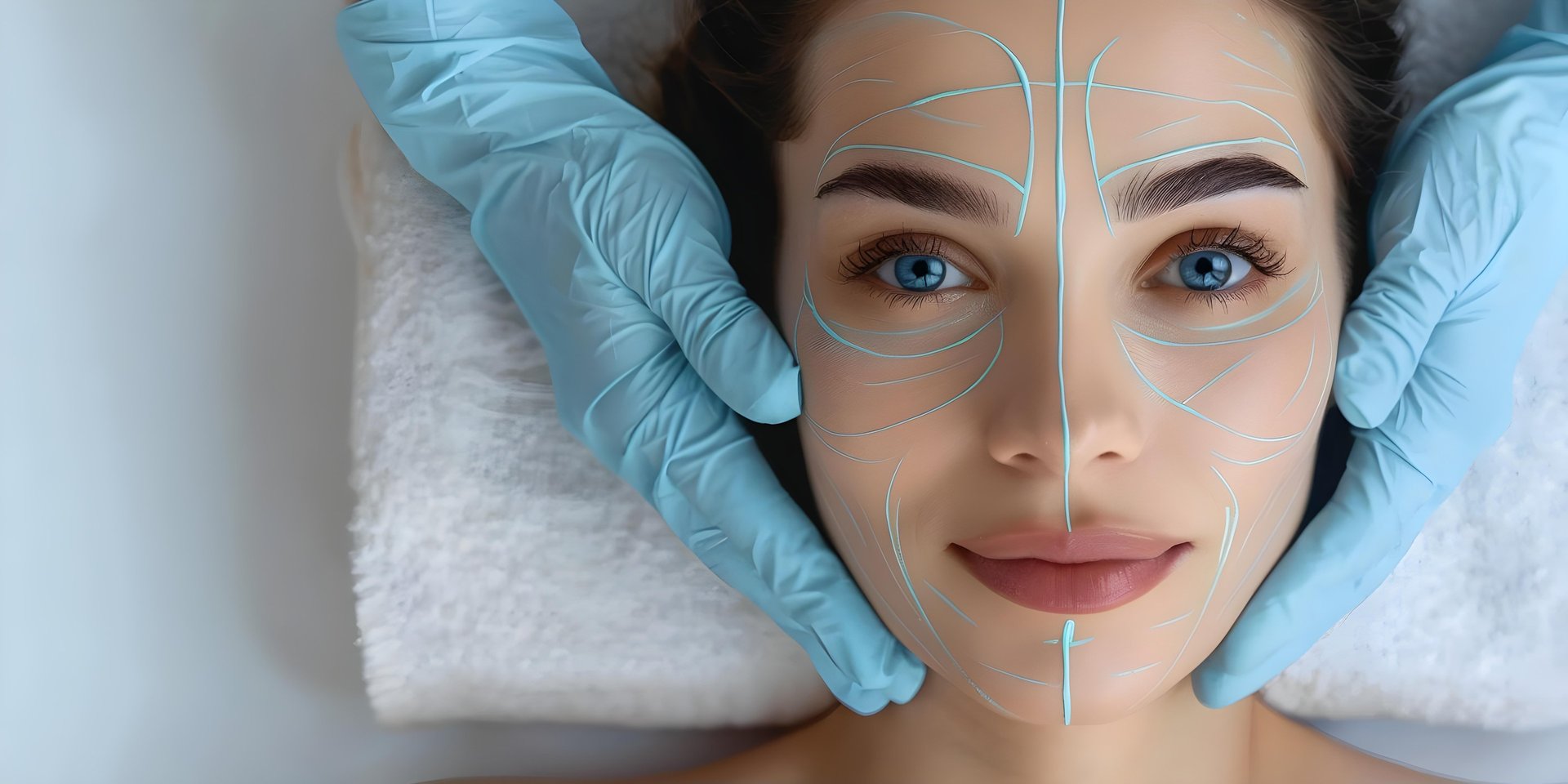 Close-up of a smiling woman with glowing skin after facial rejuvenation treatment.